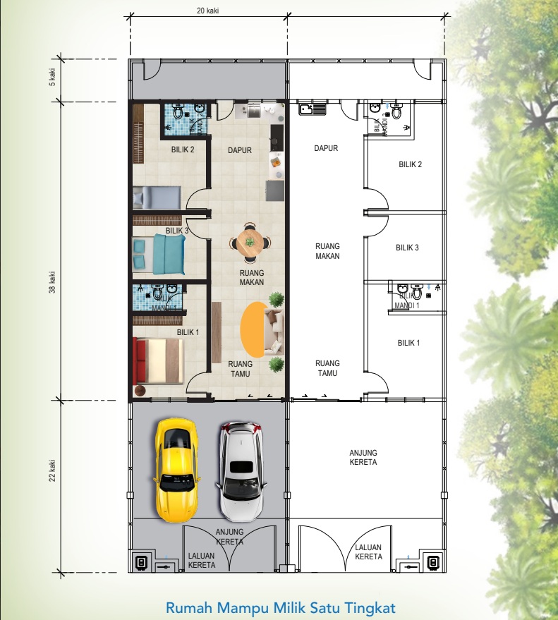 Saiz Tanah: 20’ x 65’